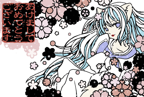 イラストは、今年の年賀状のですが、それだけではつまらないので雪を降らせてみました。