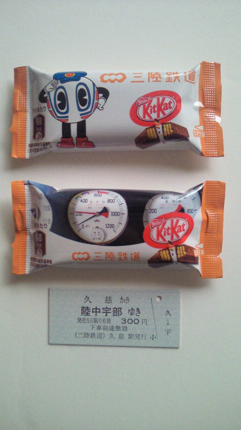 三陸鉄道とキットカットのコラボです。車両形の箱の中に、キットカットと組み立て式の座席等が入ってます。