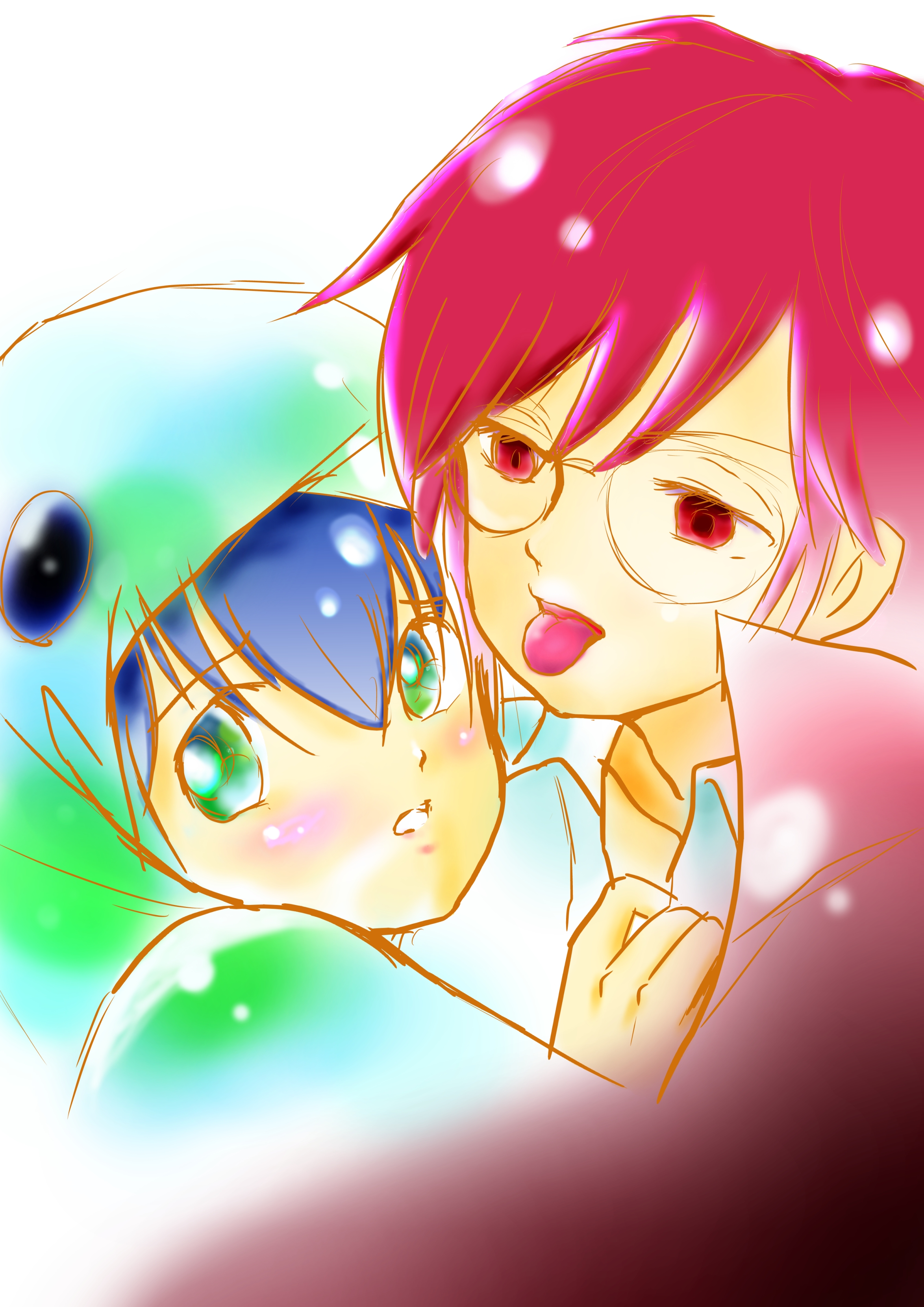 娘が今はまっているぷよぷよのCP。 「あやしいクルーク×レイ君」だそうです。 「描いて」 と言われたのでよくわからんまま描いてみたよ。 私が線画を描き、娘が色を塗りました。 合作です。イエーイ♪ …って、全然嬉しくないぞ。 いや、私も別バージョンで塗ろうと思ってたんだけど、 「もう、別にこれでいいか」 と。 よくわからんキャラに愛情は注げんです。 スイマセン。 そのうち気が向いたら塗る……かも。