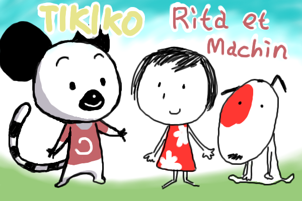 Tikiko はティキコ、Rita はのどをがらがらっと鳴らすリとタでリタ、et はエ(リタとガスパール gaspard et lisa でもでてきたので et は、and だな、ということがわかりますね)、Machin は、マシャン、普通のマのあとシの音を出すために口を閉じ加減にしたまま二度目のアを発音する、マシャン。どちらもフランスの幼児向け絵本シリーズ。