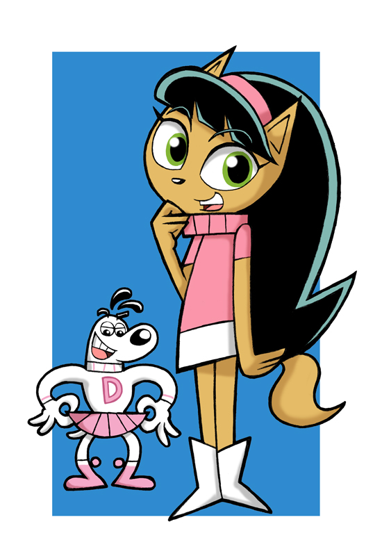 T.U.F.F. Puppy のキティとダドリー。ふと思いついて描いてみました。新しい机も絶好調(意味がわからないな)。アメリカでは第2シーズンも好調(?)のようすだけど、日本にゃこないんだよ~。ニコロデオンのバカ~。