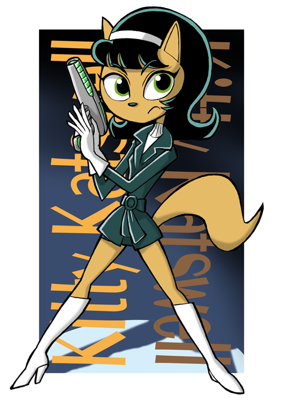 | 説明文 | 冬コミで出したコピー本のひとつに色をつけてみました。 「タフ・パピィ」のキティ・キャッツウェル。衣装はパイロット版。 カートゥーン定番のひとつ動物キャラ。頭の悪い主人公に振り回される(実際に棍棒がわりにふりまわされたりしていた)ヒロイン。一見有能なエージェントだが少女時代は問題児だったという素敵なネコ。声はグレイ・デライルね。 |