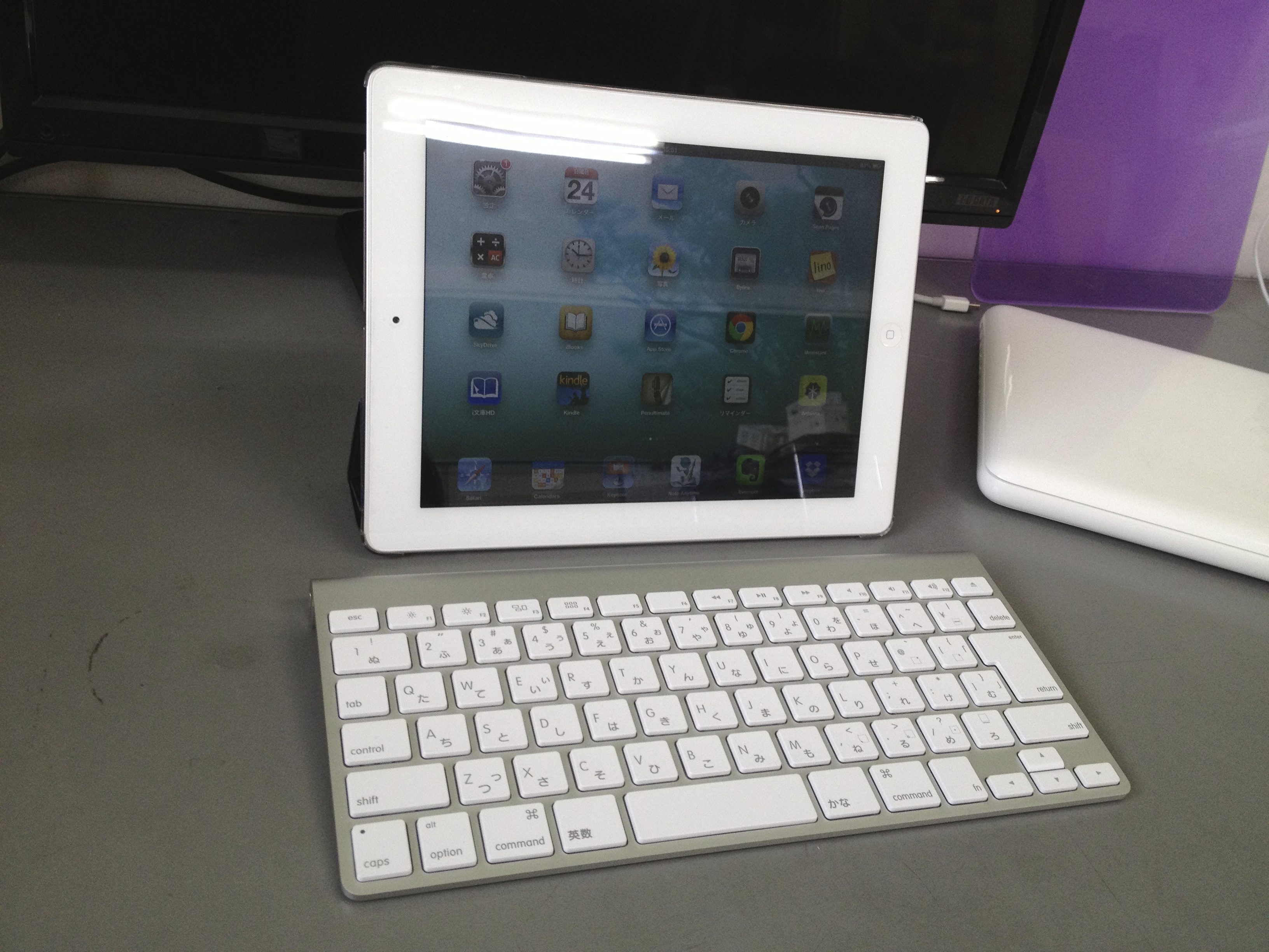 巷ではiPadminiが話題ですが、ぼくは多分今後iPadが軽くなってってくれれば、miniではなくて大きい画面のiPadを使ってくのかなー、とか思ってます。軽くならなければmini検討しますが…。 仕事で一日中iPadを持ち歩いています。 このiPadってやつは本当に便利で、iPadのおかげでいつも持ち歩いていたメモ帳とスケジュール帳と業務ごとのファイルがぼくの身の回りから姿を消しました。 アプリケーションが充実していくに従って、パソコンを開く機会もどんどん減っていっています。 ついでに家に帰ってからもiPadは、ネットしたり、読書したり、音楽聞いたりとずっと傍らにある感じです。 そんなiPadがもっと便利になるんじゃないかと思い今回ついにワイヤレスキーボードを購入。 もっと安いのはいろんなメーカーから出ていますが、デザインを優先にかんがえた結果結局アップルのワイヤレスキーボードになりました。 で、これを使って今もiPadで書いてるのですが、もうこりゃ完全にパソコンです。 これからさらにiPadでできる仕事が増えそうです。 いよいよパソコンを起動するのはPhotoshopを使うときとか、データのバックアップをとるときとかに限定されそうだー。