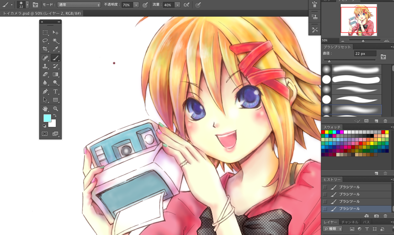 まあ快適です。 ぼくの使ってるMacBook Late 2009でも快調に動いてくれます。 楽しいわん。 赤色の話。 難しい色ですね。 ぼく苦手な色です。使うの。 とある本で赤色の絵は人気がでると読んだんですよ。 日本の赤は水銀を燃やしてつくってたわけで、そんな希少価値感がぼくらのDNAには刻まれてるのかしらん? それとも、血の色だから? はたまた文明を持つきっかけになった火の色だから?? お絵描きって奥が深くて楽しいっすね。