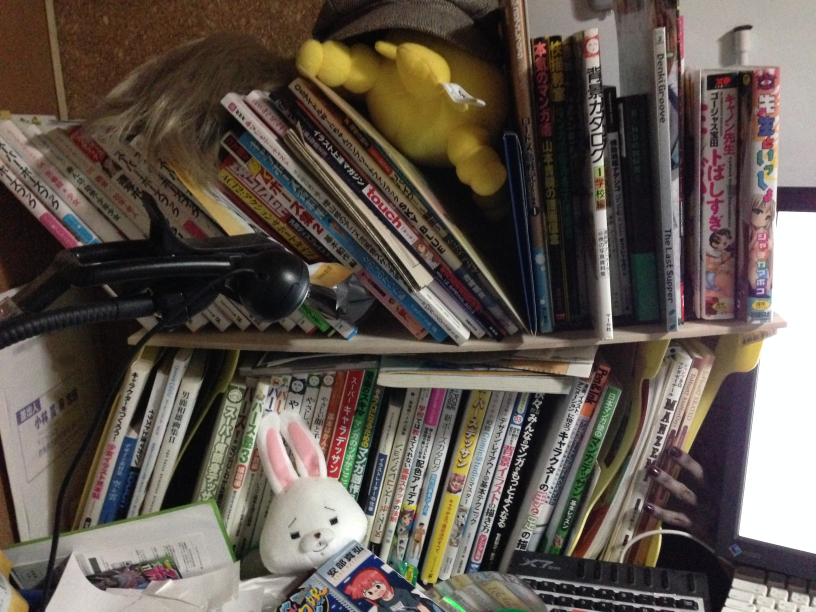 昨夜地震が有りました。 私の地域は震度4と報道されていましたが実際はかなり揺れたかんじがします。 救急車のサイレンも聞こえたので近所で被害が有ったのかもしれませんが、我が家では作画資料の棚が傾いた程度でけが等はなし。 2001年の芸予地震でタンスの上からブラウン管モニターが寝ていた私の耳元のにドスンと落ちてきて以来腰から上には重い物は設置しないようにしています。