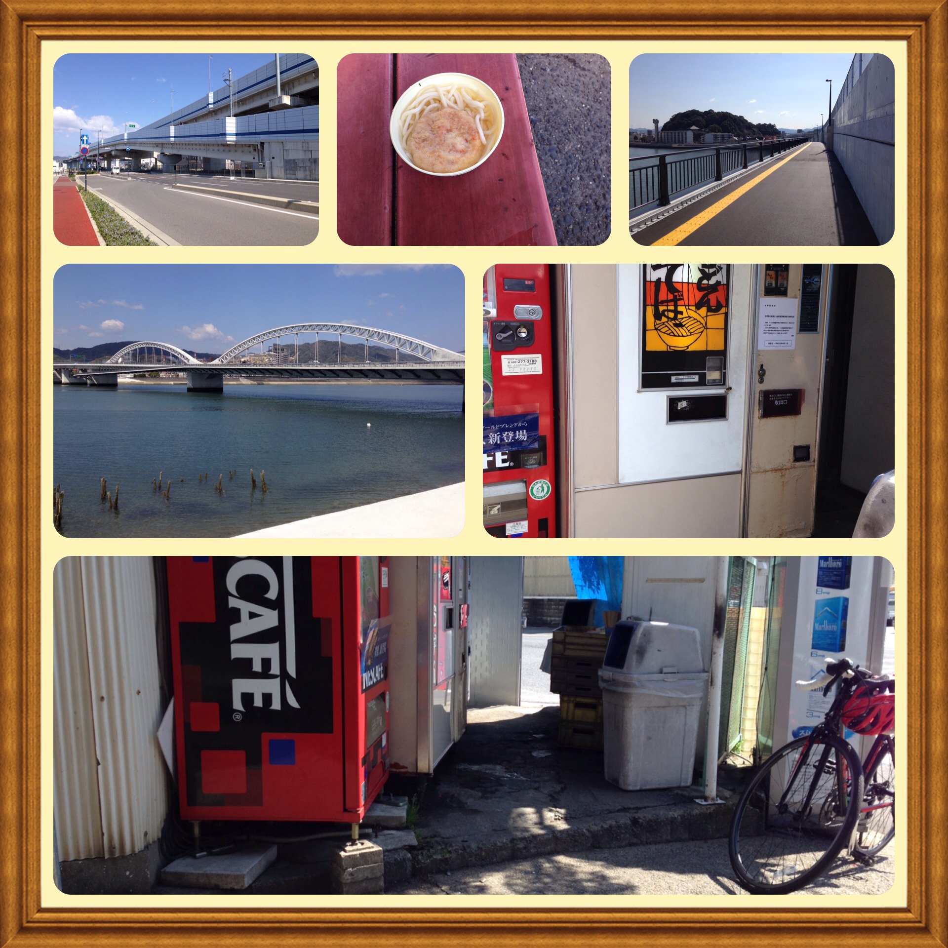 広島の宇品にレトロなうどんの自販機があると聞いて、夜勤明けに自転車で食べに行きました。 片道22キロ大した距離じゃないし、開通したばかりの高速3号線沿いのサイクリングロードで時間短縮できる。 目的の自販機が隠すように設置されていて探すのに時間掛かりましたが見つけた時の感動はひとしおでした。 生麺のうどんの一杯220円 機械の中で湯きり調理され食べれられる状態で出てきます。 大盛り麺と大きな天ぷらで、お腹いっぱい。 次回はそばを食べよう。 帰りはちょと違うルートで帰り往復42キロ。 翌日は疲れがどっと出てずっと寝ていました。