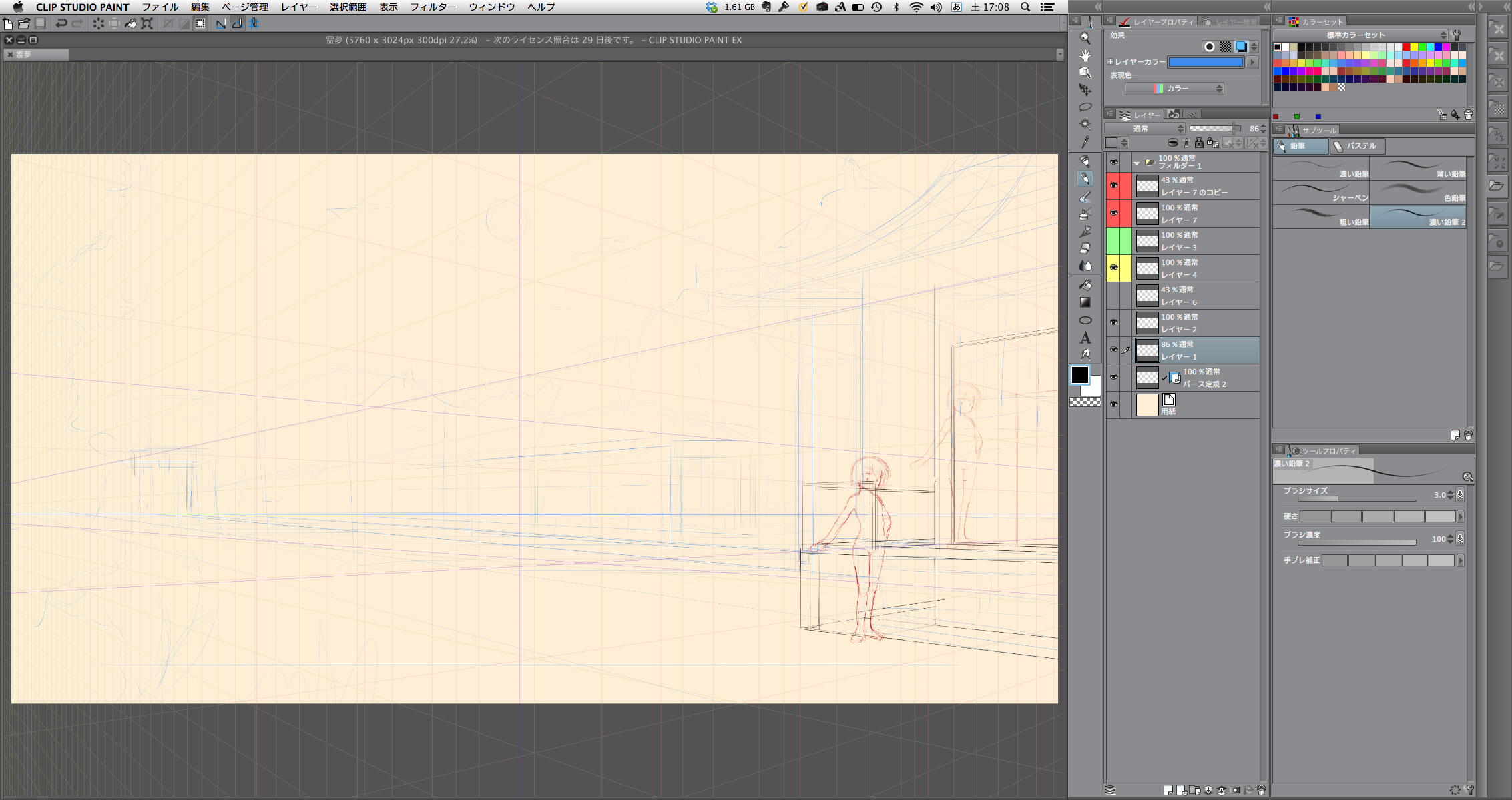 パースの練習を兼ねて博麗神社を描こうと思います。 3Dモデルは使用しない・スケールをキチンと考える・人物を配置する。 人物も十数人は描き込みますので、かなり大がかりになりそうです。
