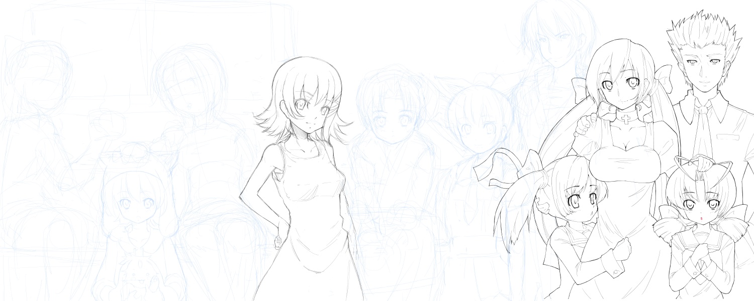 昨日までの状態。 ジュリア・メモリアルの下書き終わる。 公式絵を元に適当にアレンジ加えてるので、若干の違和感はご了承くださいm(_ _)m