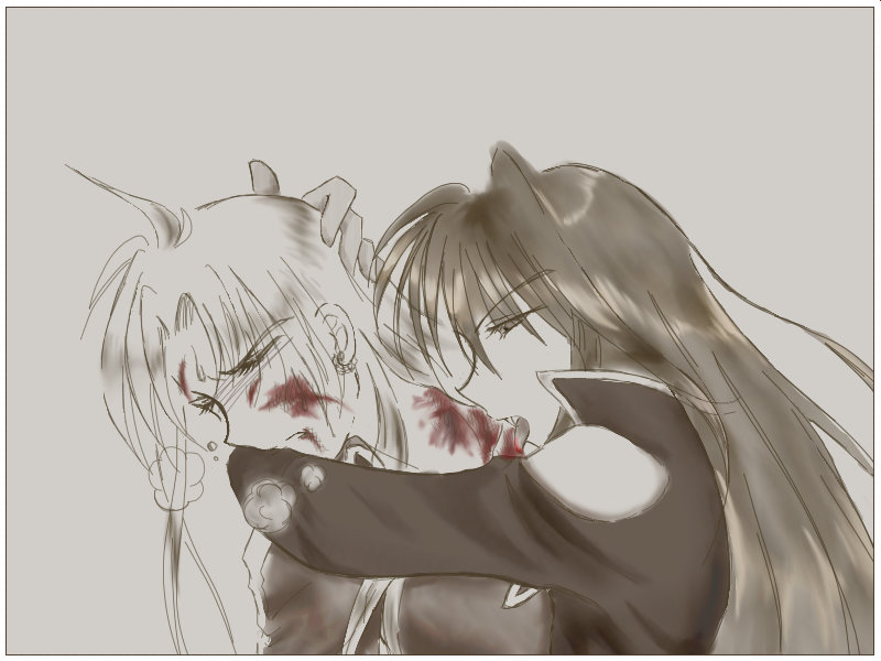 何の意図も無かった。汗で頬に張り付いた髪を、何となく避ける。こちらも所々、血で固まっていた。